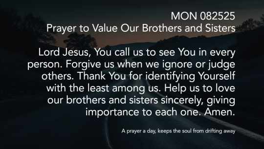A prayer a day, keeps the soul from drifting away 082525 Prayer to value our brothers and sisters. Related