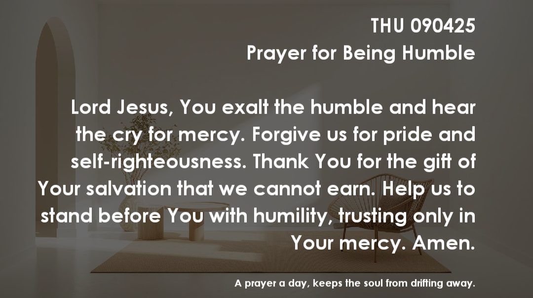 Lord Jesus, You exalt the humble and hear the cry for mercy. Forgive us for pride and self-righteousness. Thank You for the gift of Your salvation that we cannot earn. Help us to stand before You with humility, trusting only in Your mercy. Amen.