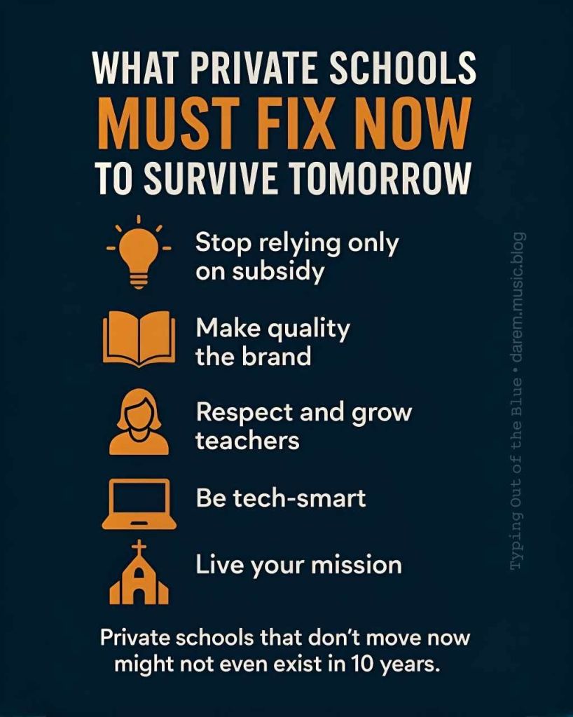 The survival of private schools will never depend on outside lifelines. Without reform, many will close their doors in the next decade. Only those that build a strong foundation—mission alive, quality consistent, teachers respected, systems adaptable, and finances secure—will stand the test of time.