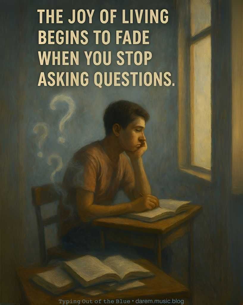 The joy of living doesn’t vanish overnight—it fades the moment we stop asking questions. When we stop wondering, life stops expanding. It just loops. Same scenes, same noise, same answers recycled until nothing feels alive.