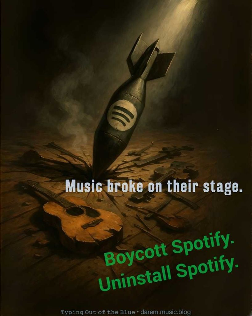 Boycott Spotify. Uninstall Spotify. Let the soul of music live somewhere honest—somewhere human—before the vanishing song disappears for good.