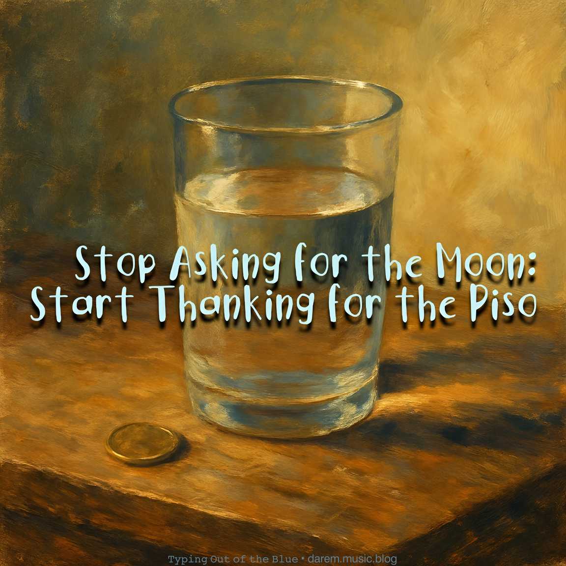 Try this instead. Pray to find a piso under your bed. Wish for a cold glass of water after walking in the heat. Thank Him for a comfy seat when you’re tired or when your small wound heals fast. Those are blessings too—tiny but real.