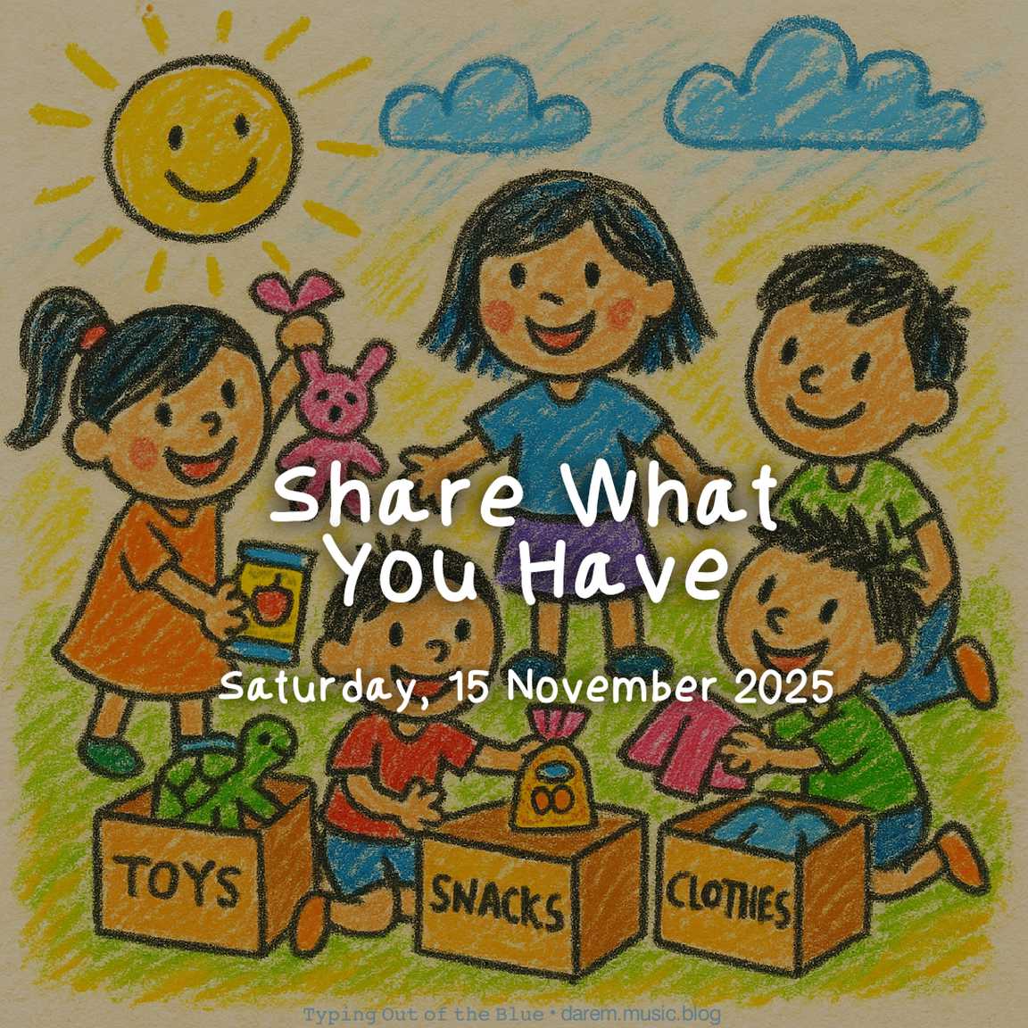 Lord, You give us more than we need. Sorry when we forget to share. Thank You for every gift You give. Please help us share with joy and love like You. Amen.