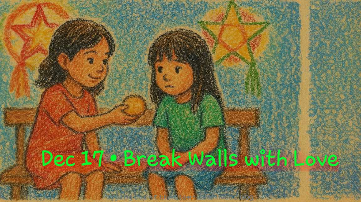 Lord Jesus, You loved everyone. Sorry when we choose anger instead of love. Thank You for helping us be brave. Please help us break walls with kindness. Amen.